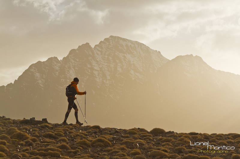 La route sillonne et s’élève, régulièrement traversée par un enfant, une mule ou une femme courbée sous le poids d’un fagot démesuré. Les cultures en terrasse, verdoyantes, contrastent sur la terre rouge de la vallée de l’Ourika. Plus nous montons, plus le brouillard se densifie. Plus nous montons, plus mon impatience grandit. Au bout de la route goudronnée, il y a Oukaïmeden. Station de ski galvaudée par les Marocains en hiver, plateau où paissent chèvres et moutons à la belle saison, Oukaïmeden est aussi l’écrin d’un événement unique : l’Ultra Trail Atlas Toubkal. Pour la première fois, je vais vivre cet événement qui me fait rêver depuis mes débuts dans le trail running. Pour avoir déjà foulé la terre rouge du Haut Atlas en mai dernier, je sais que les paysages seront aussi enchanteurs que dépaysants et les parcours aussi techniques qu’exigeants.