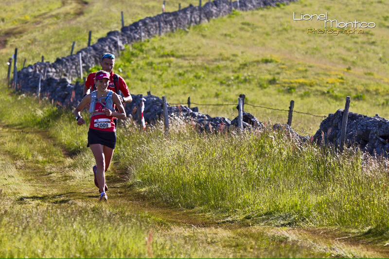 En délicatesse avec un adducteur et un genou depuis dix jours et tout juste sortie du cabinet d’ostéopathie, j’avoue que je n’aborde pas cette course l’esprit serein. Il faudra composer avec la douleur pendant la bagatelle de 29,5 km et 800 m D+. Mais la chimie se révèle miraculeuse car une bonne dose de paracétamol semble avoir raison des caprices tendineux et articulaires en ce dimanche matin. Sur la ligne de départ, Dominique Chauvelier me sourit et fait monter la pression dans le peloton de 700 coureurs impatients de s’élancer sur les sentiers. La musique s’élève et me rappelle étrangement le Marathon des Causses d’octobre dernier… Sous un soleil resplendissant, je vais profiter des paysages à 100 %, admirer les vaches aux yeux de biche, contempler les vallonnements des prairies fleuries, savourer l’ombre des forêts et papoter aussi avec des concurrents vraiment sympas qui m’encouragent et m’emmènent sur quelques kilomètres. Le terrain est si peu technique que nous pouvons courir en quasi-permanence et, bientôt, les jambes commencent à tirer un peu. Les quatre derniers kilomètres me paraissent longs, mais je déguste ma deuxième place à sa juste valeur. J’avoue aussi qu’il était temps que la ligne d’arrivée se profile car l’adducteur commençait à exprimer son mécontentement…