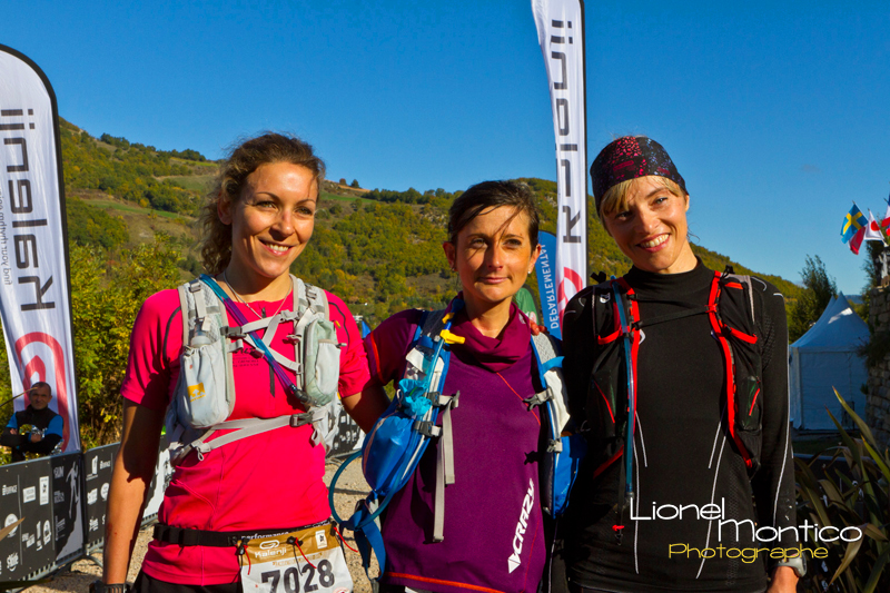 Enfin, l’arrivée. Fred Bousseau mitraille ma jambe en me souriant. Les speakers s’étonnent de mon état lamentable. Photo sous le portique mythique des Templiers avec Marie Dohin, qui a repris la première place, et Céline Costes, qui s’est emparée de la deuxième. Rideau.