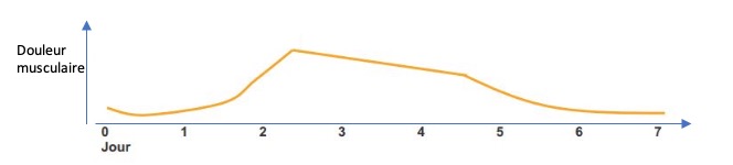 Évolution des courbatures depuis l’effort initial (jour 0) jusqu’à leur disparition